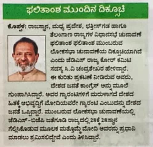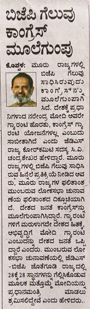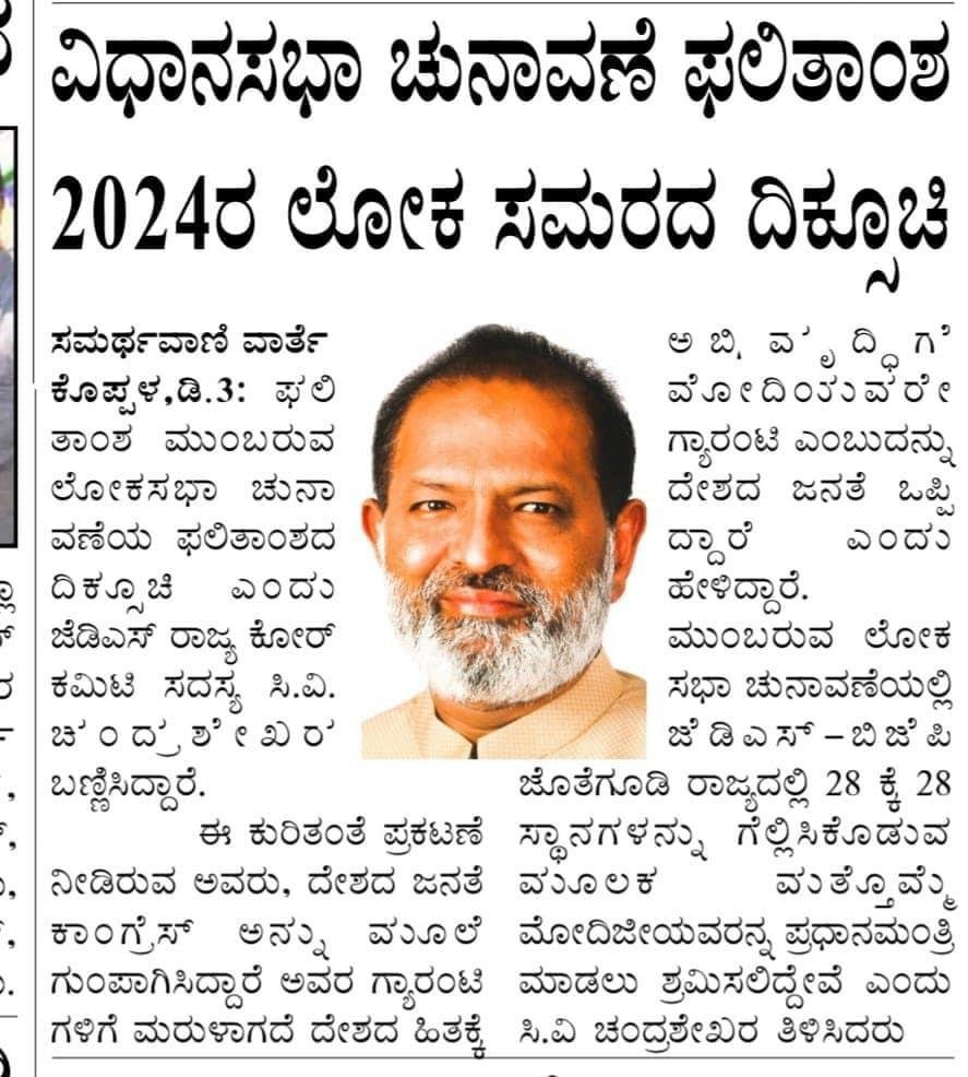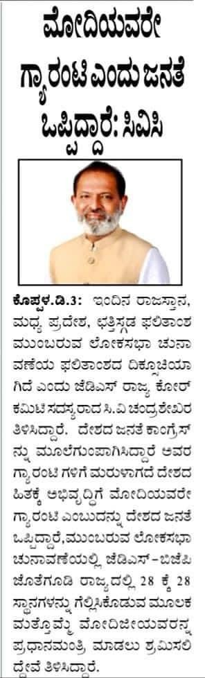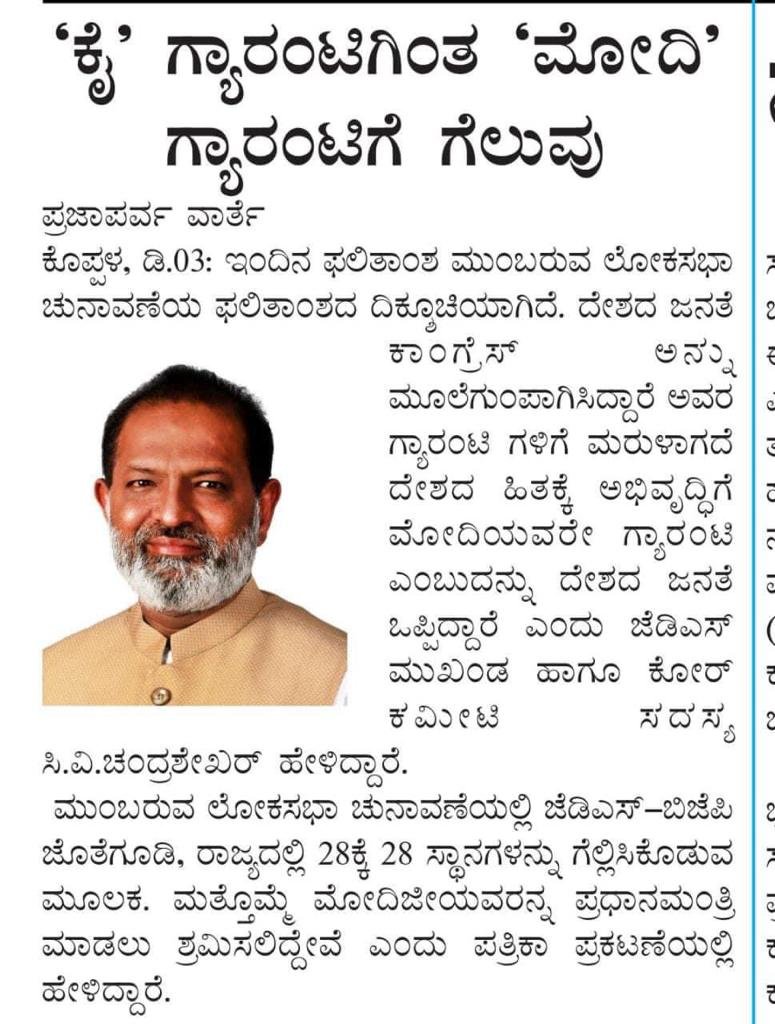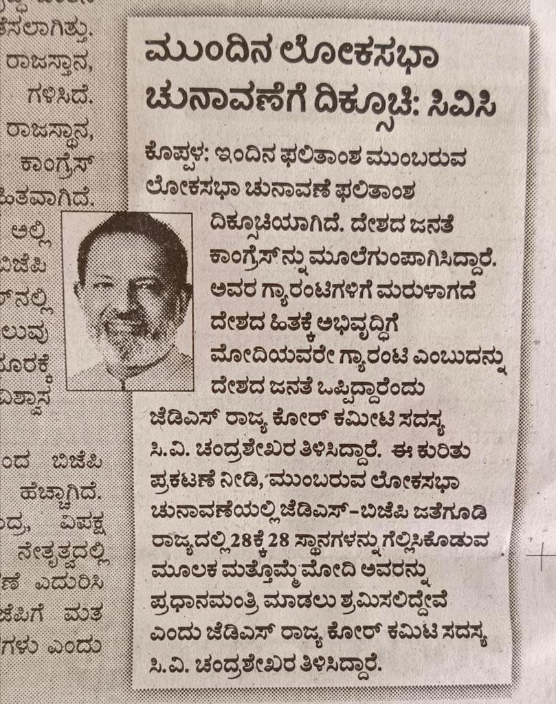 Dedicated to advancing the welfare of Koppal residents through progressive policies and inclusive governance, CV Chandrashekhar, the JDS politician, envisions a thriving and harmonious community.